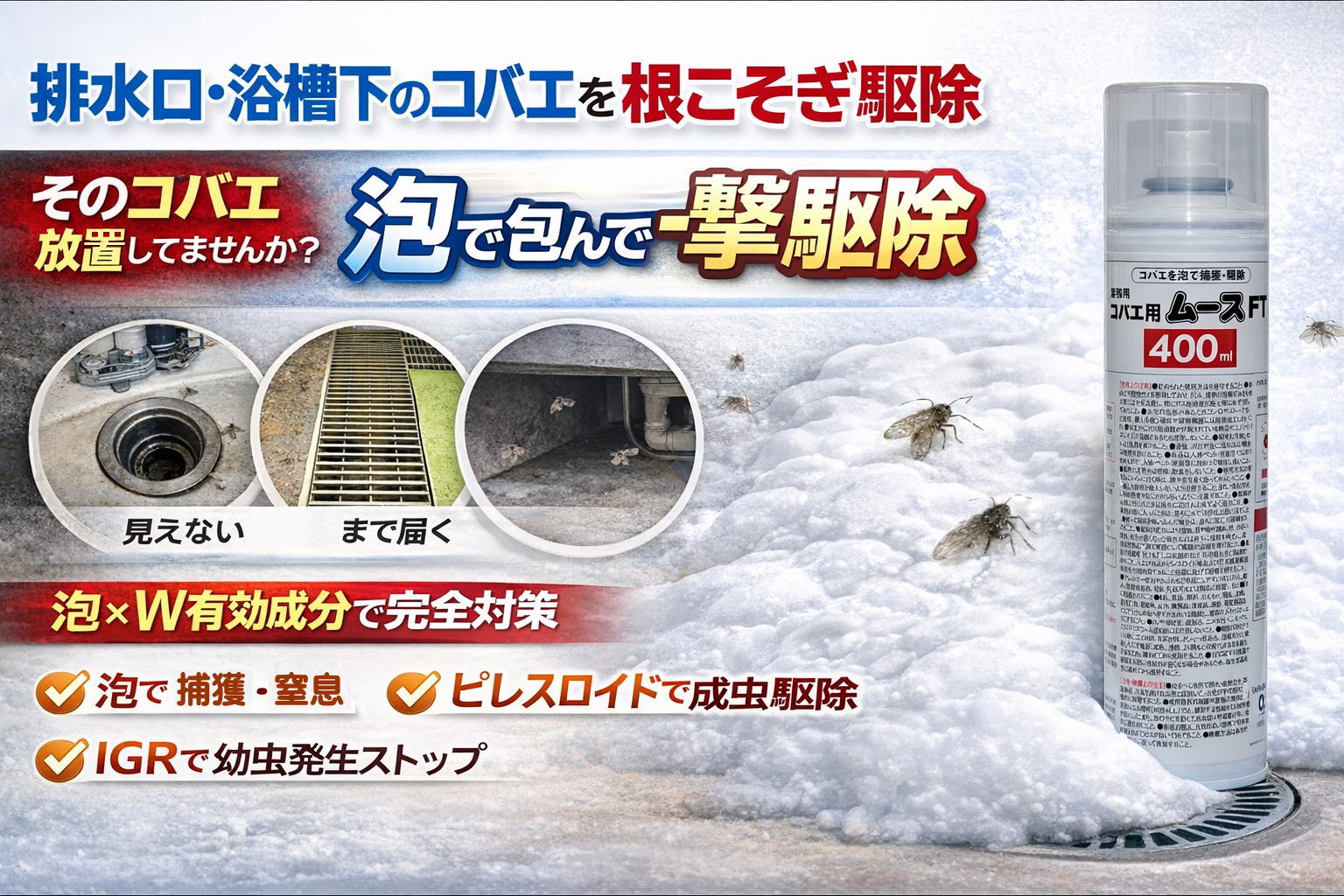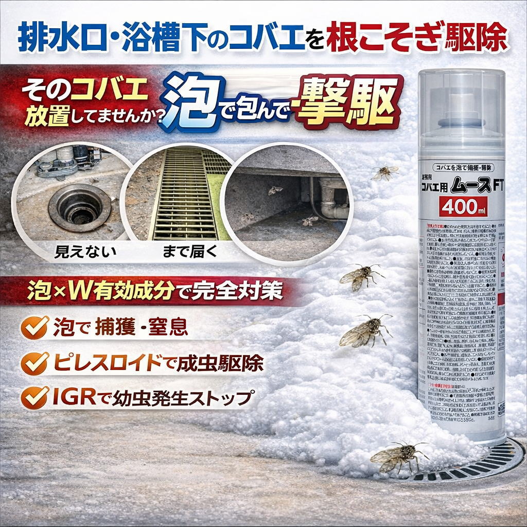 業務用コバエ用ムース チョウバエ コバエ 予防駆除防除 台所 配管 泡
