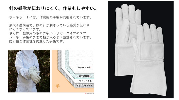 ●蜂の針からしっかりガード、独自の3層構造