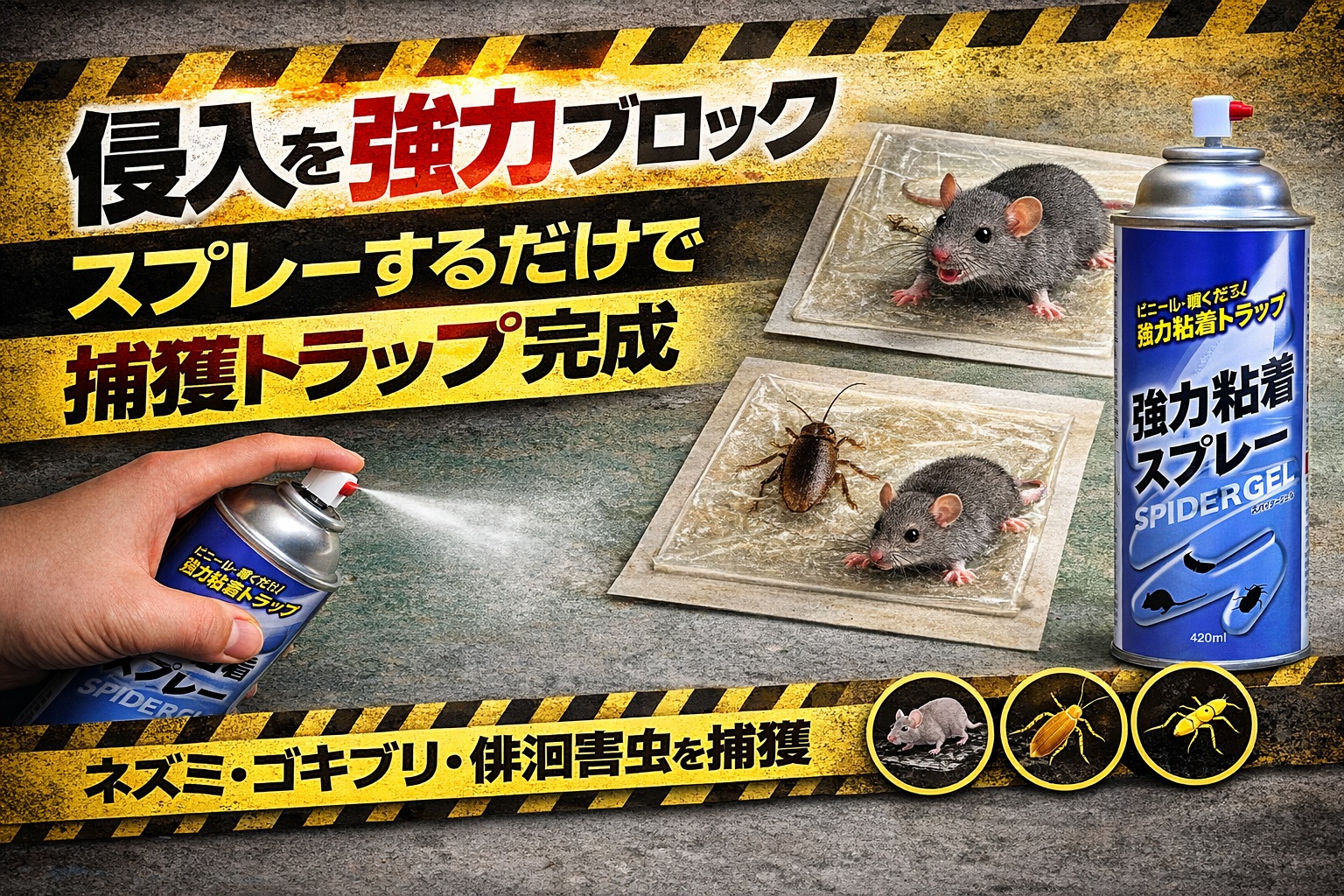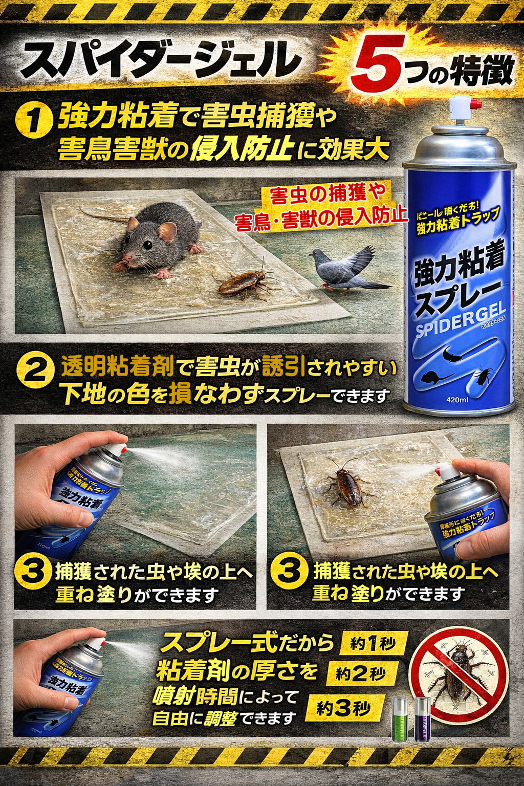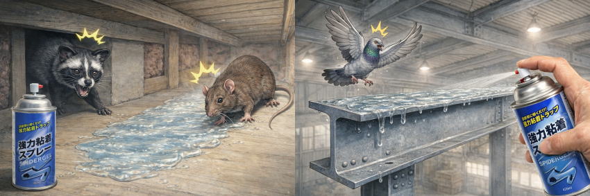 - 強力粘着スプレースパイダージェル 害虫 害獣 害鳥 捕獲 侵入防止 予防 駆除 退治