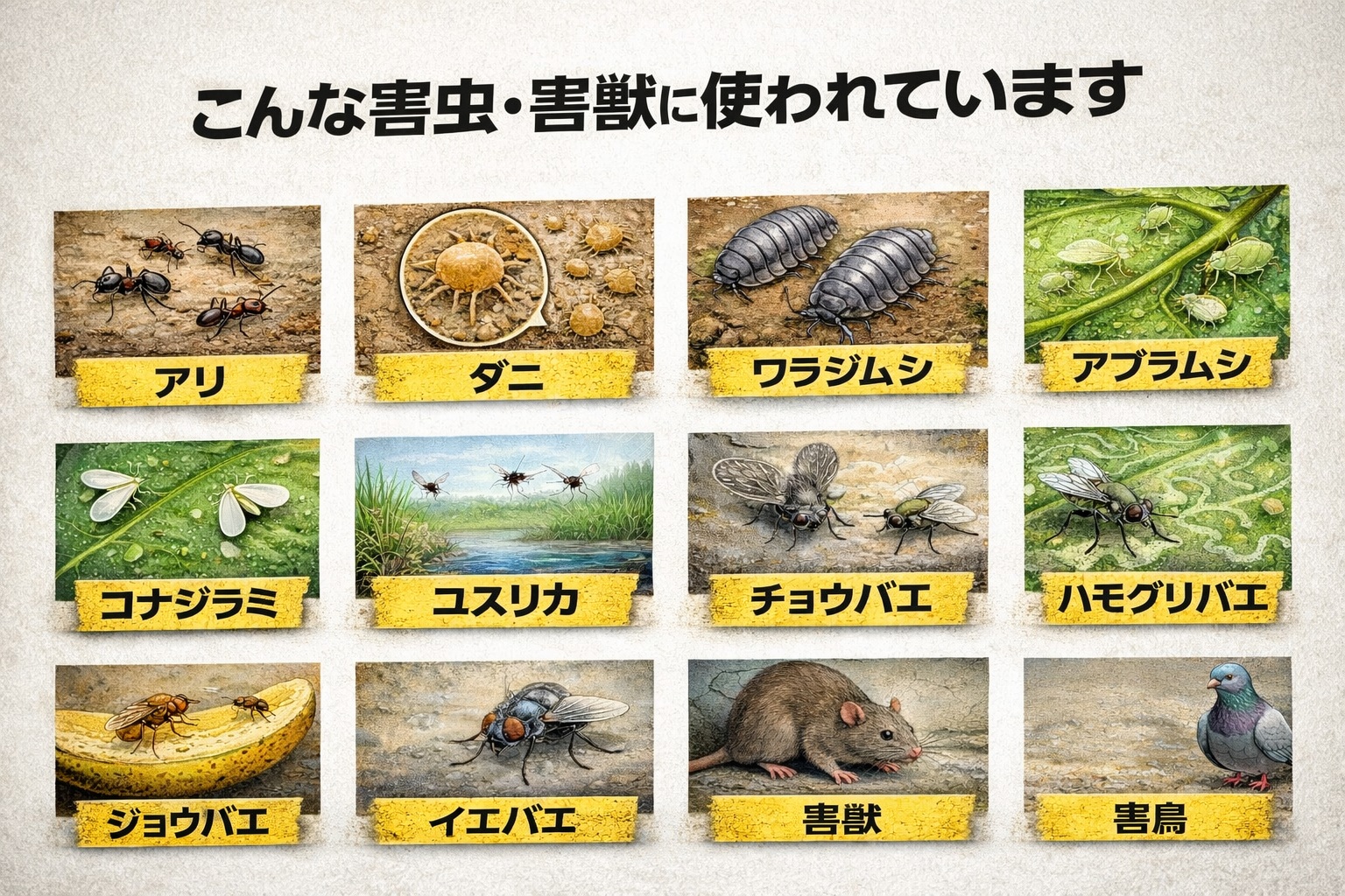 - 害虫、害獣、害鳥などの捕獲や侵入防止